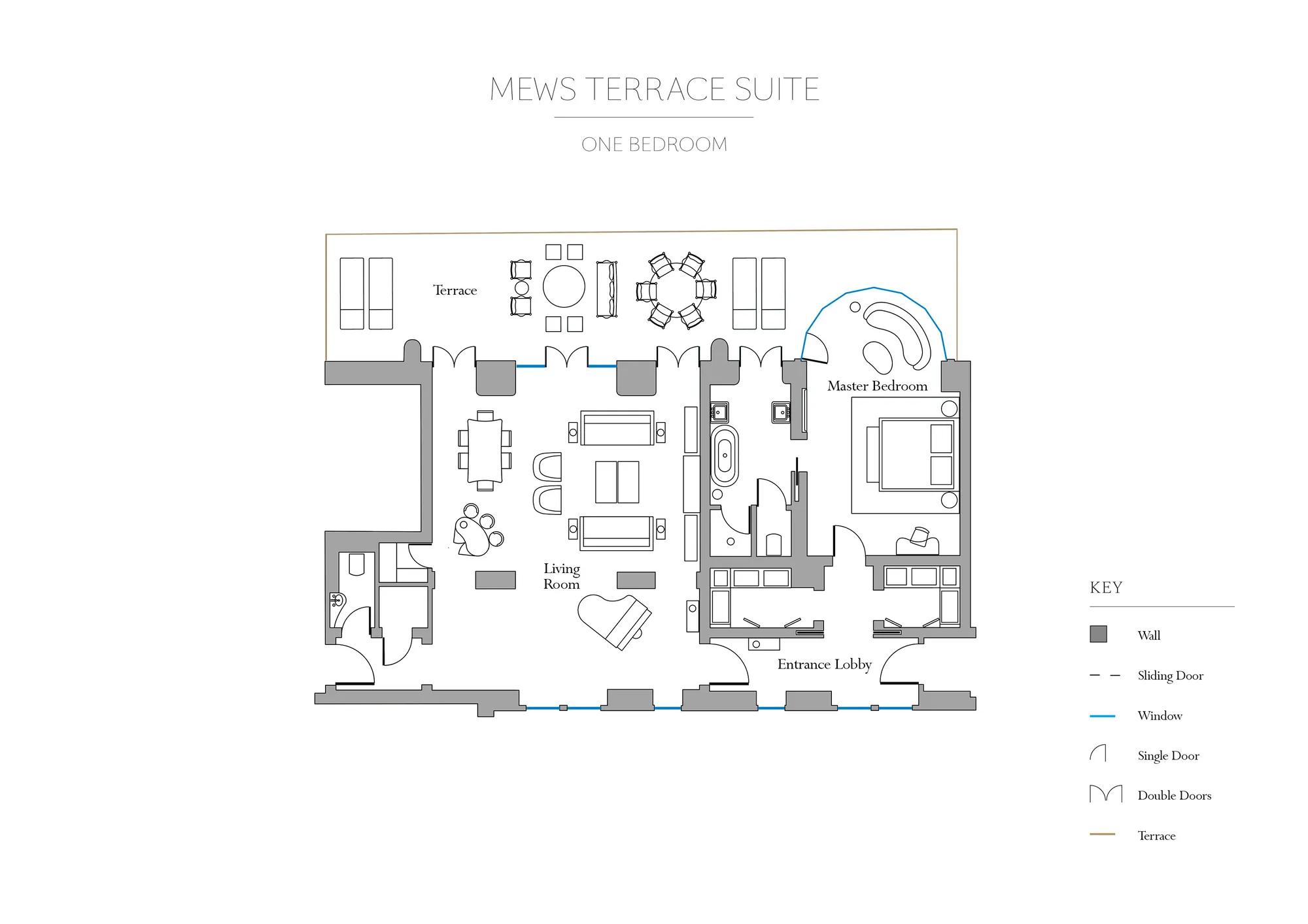 The Mews Terrace suite embraces Claridge’s Art Deco heritage, with rich materials, flowing architectural lines, and hand-picked antiques. Its two-bedroom layout offers a true sense of place, with panoramic views of London’s iconic landmarks from the terrace.