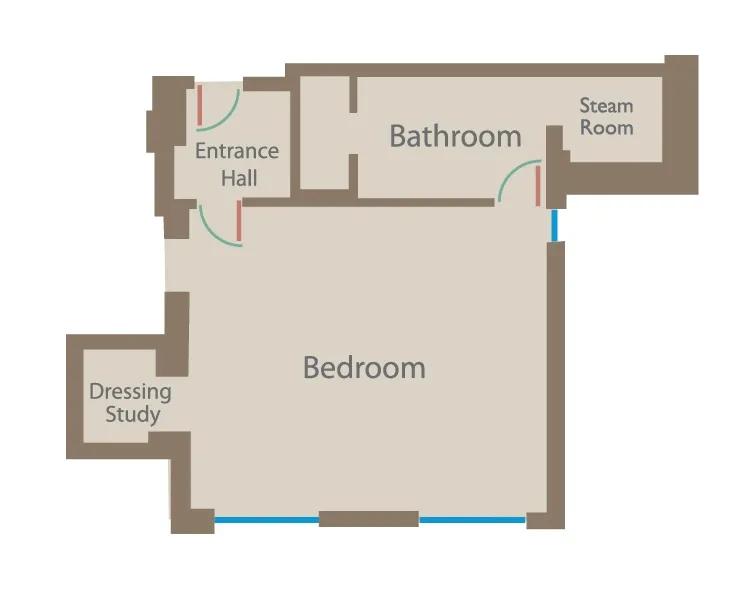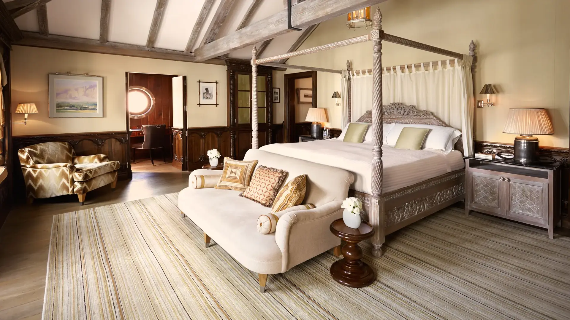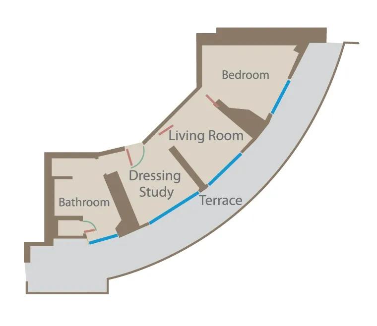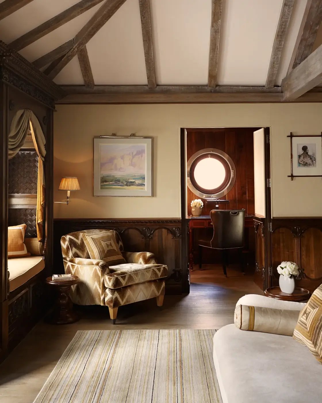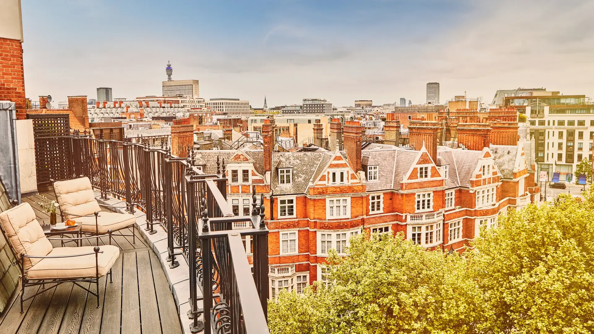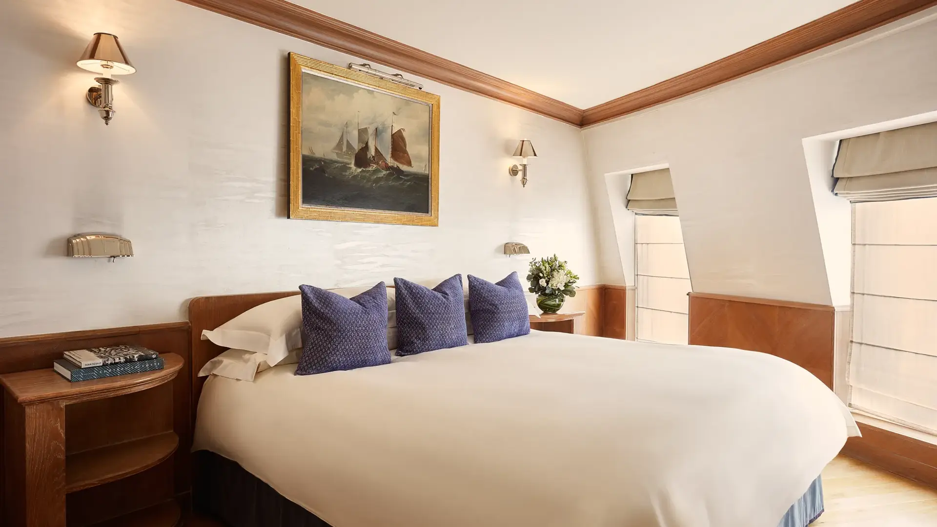 Designed by Guy Oliver to evoke a 1930s yacht, this one-bedroom suite feels like a captain’s cabin with 270° views of London. Nautical touches - from portholes to bespoke furniture - bring the golden age of sailing to life, and a wrap-around terrace invites sunbathing or stargazing.