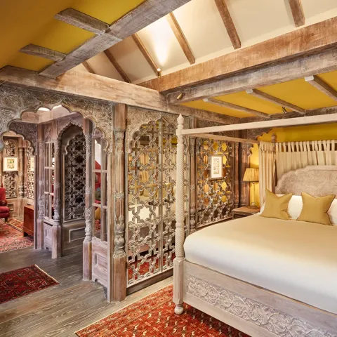 The Prince’s Lodge is a richly layered space inspired by Kabul’s Peacock Palace and named after Prince Arthur, Duke of Connaught. Handcrafted Afghan furniture and Islamic design meet clean, minimalist architecture, creating a bold blend of heritage and modernity - complete with original artworks and antique treasures at every turn.