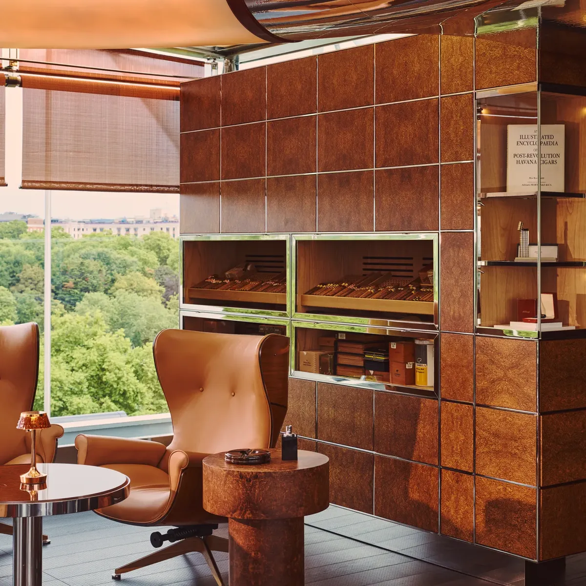 Perched high above the capital, The Emory Cigar Merchants is dedicated to the craft of fine cigars, with an expertly curated selection sourced for both seasoned aficionados and the newly curious. Floor-to-ceiling outlooks frame the London skyline, while an advanced extraction system ensures exceptional comfort. Intimate yet striking, the interiors are the work of acclaimed designer Rémi Tessier.
