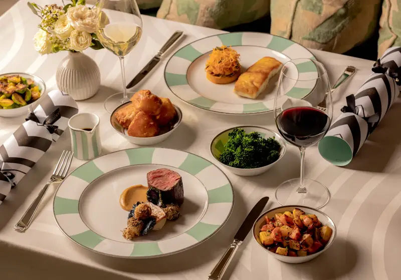 Become a part of a 150-year tradition, served on bespoke jade-striped Bernardaud china at The Foyer & Reading Room.